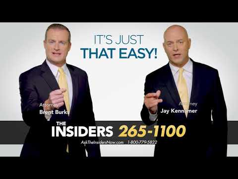 Speaker 1: I got hurt in a car wreck. Give me one good reason why I should call The Insiders. Attorney Brent Burks: How about three great reasons you should call us? Attorney Jay Kennamer: One: it’s easy! You can…